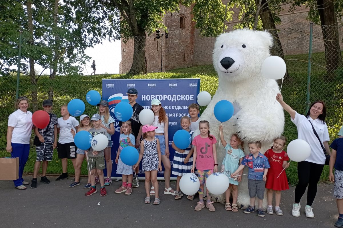 Новгородский областной центр многодетной семьи при поддержке "Единой России" в Кремлевском парке на теннисном корте устроил праздник Зажигательная зарядка, аниматоры, конкурсы, плетение косичек, раскраски,