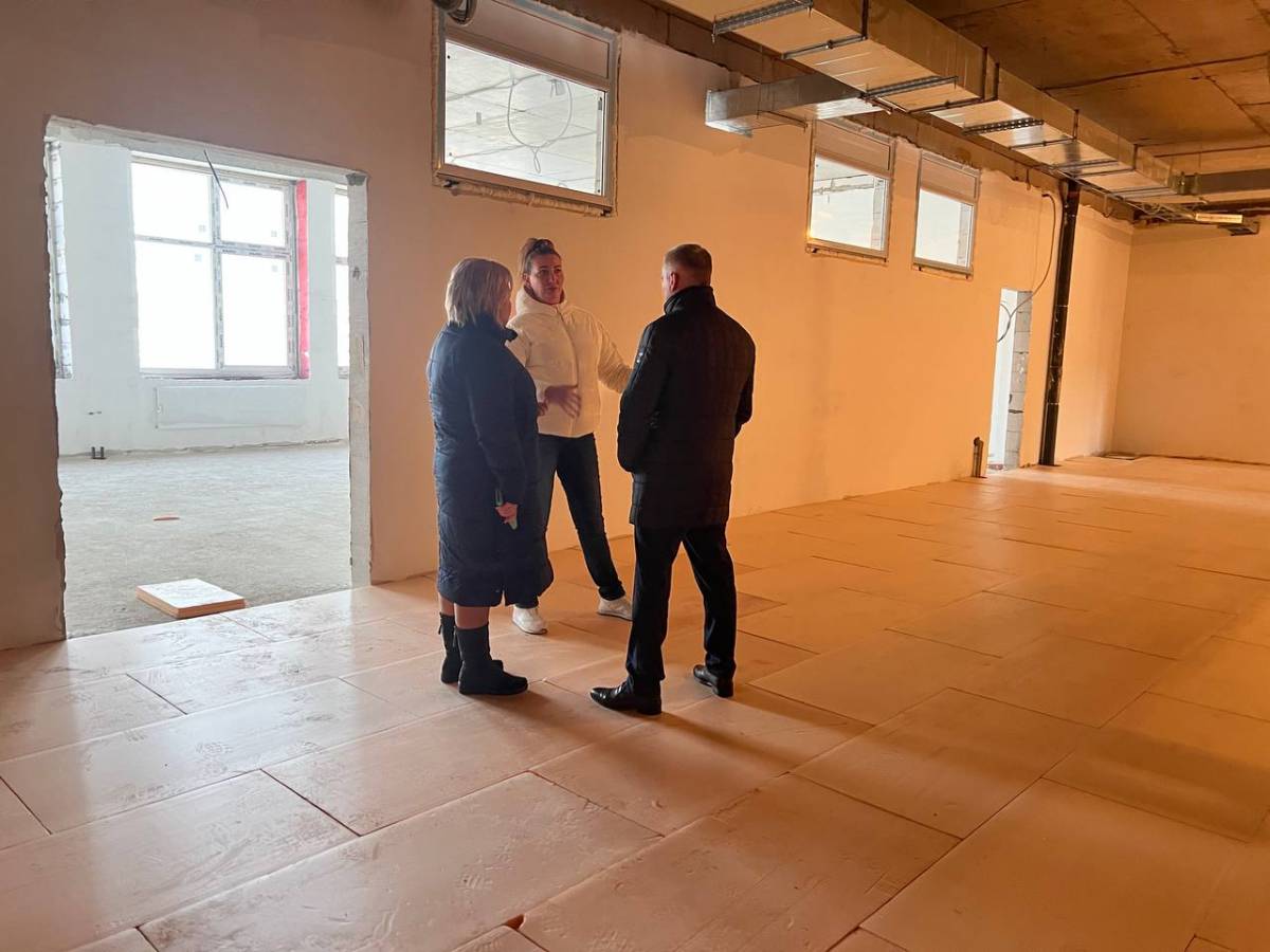Сейчас продолжается отделка фасада, благоустройство территории, ведутся работы внутри здания.