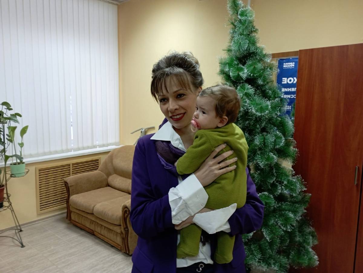 Ольга Новосёлова пришла в региональное отделение партии «Единая Россия» с 4-месячной Вероникой.