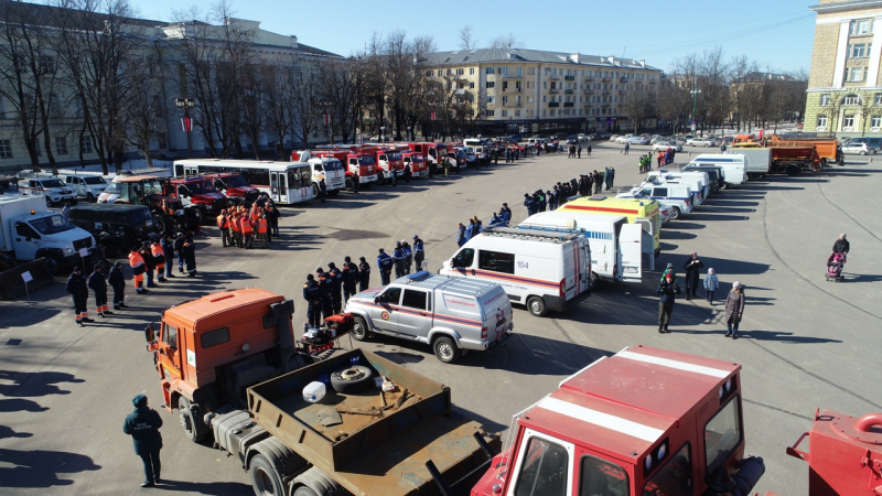 Накануне на площади Победы-Софийская в Великом Новгороде состоялся смотр готовности группировки сил и средств территориальной подсистемы Новгородской области единой государственной системы предупреждения и ликвидации чре