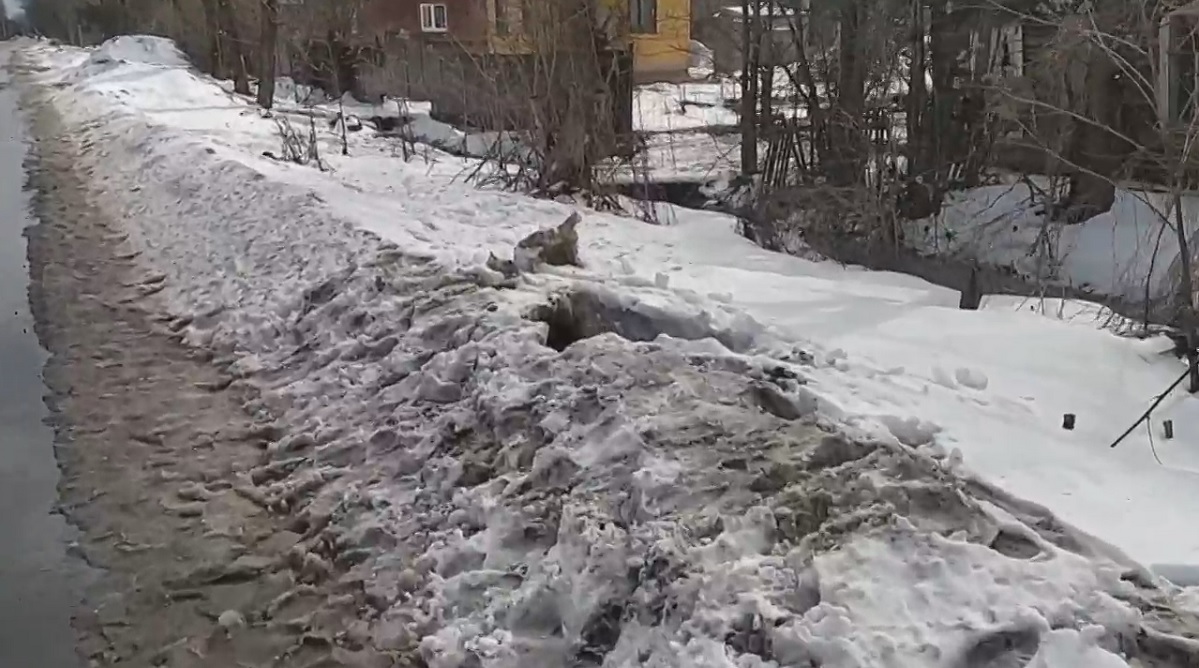 Колодец находился под снежным отвалом вдоль проезжей части.