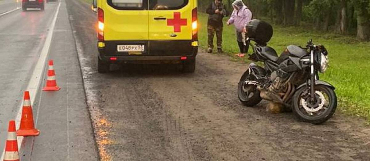 Мотоциклист сломал ключицу при падении на трассе М-10 в Новгородском районе