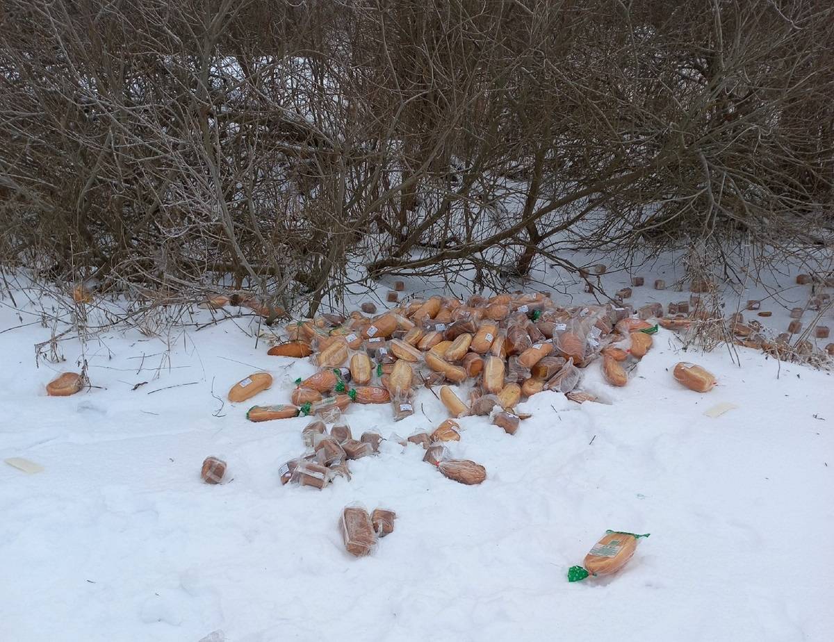 На обочину дороги в Старорусском районе выкинули десятки свежих батонов