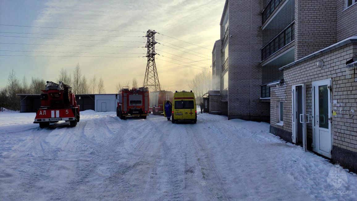 © ГУ МЧС России по Новгородской областиПрибыв на место, пожарные провели разведку на третьем этаже, куда шёл весь дым. Выяснилось, что пять человек находились в задымлённой зоне. С помощью спасательных устройств пожарные вывели на улицу троих детей и двух взрослых.