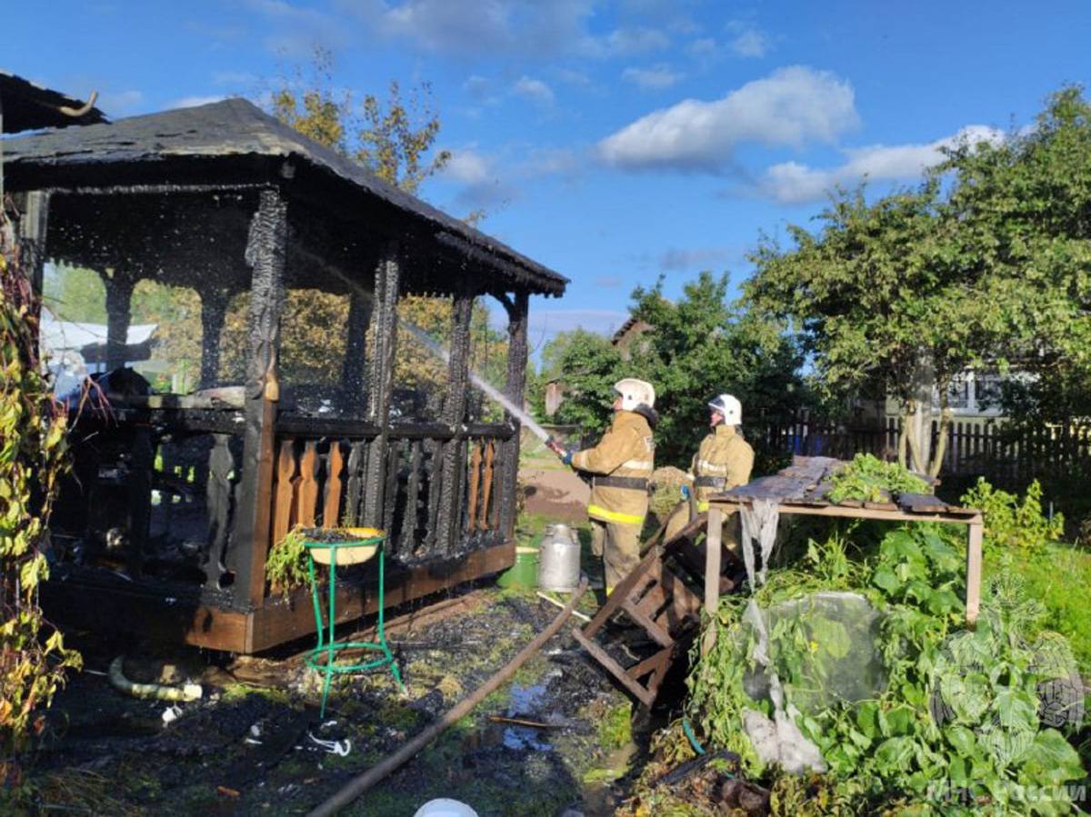 На момент прибытия подразделений противопожарной службы области установлено, что горит строение беседки открытым пламенем.
