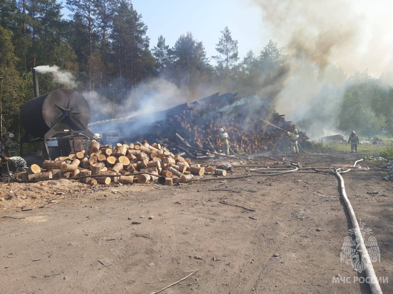 Пожар удалось ликвидировать в 19:50. В результате пиломатериалы уничтожены на площади 150 квадратных метров.