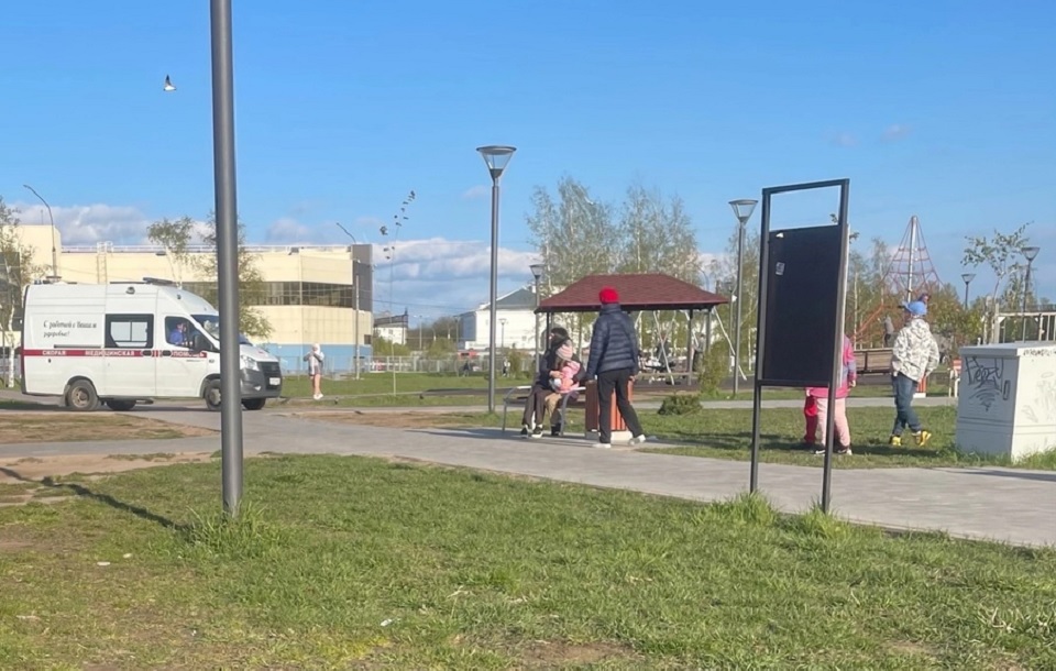 Сегодня, 6 мая, в парке Юности в Великом Новгороде на детской площадке девочка качалась на гимнастическом кольце и оно оторвалось.