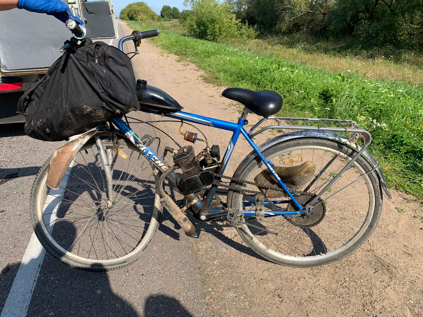 © УГИБДД УМВД России по Новгородской областиВ 08:00 на 24 км дороги Шимск — Старая Русса — Холм 47 летний мужчина ехал на велосипеде «Десна» с самостоятельно установленным двигателем внутреннего сгорания. Из-за попадания ремня сумки в переднее колесо он упал на проезжую часть.