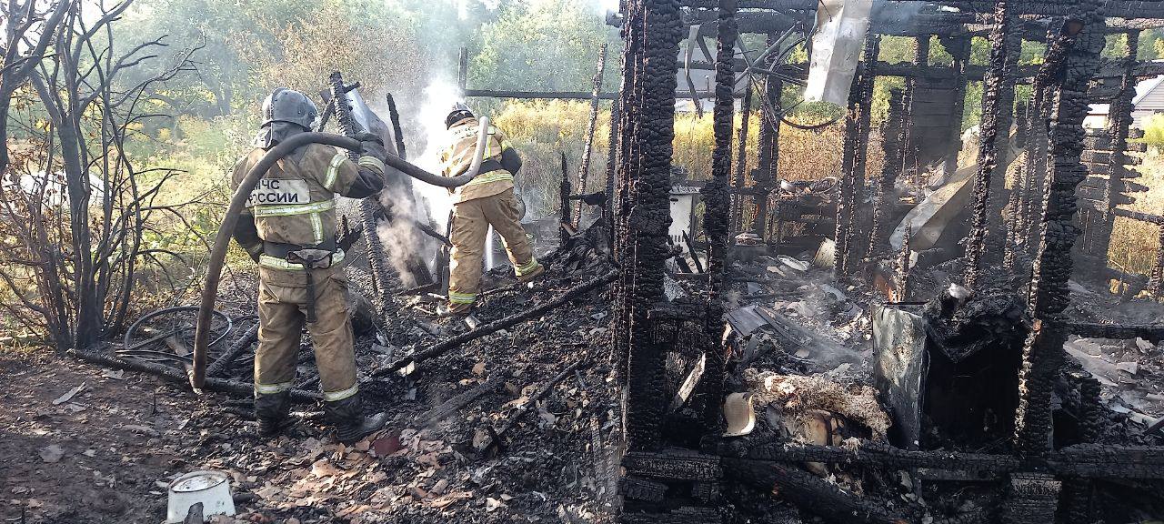 На момент прибытия пожарных садовый дом и хозяйственная постройка горели открытым пламенем, произошло обрушение кровли.
