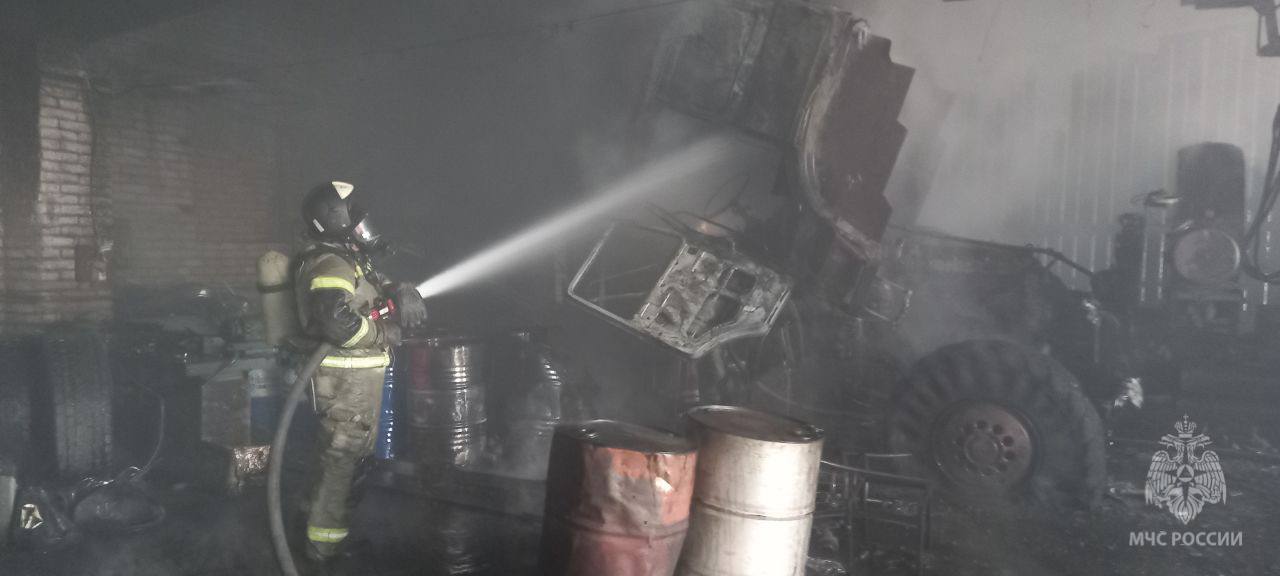 © ГУ МЧС России по Новгородской областиСообщение о пожаре поступило в экстренные службы в 12:14. На момент прибытия сотрудников пожарно-спасательного подразделения в боксе горел грузовой автомобиль.