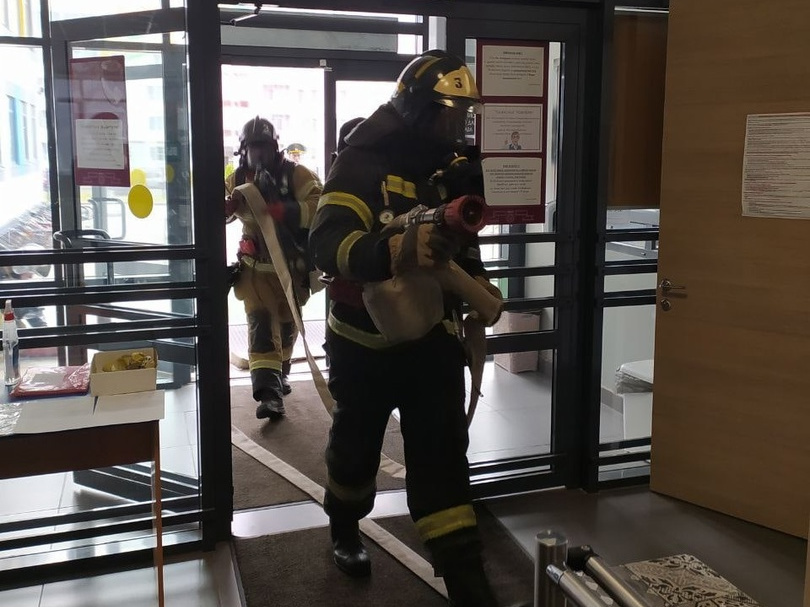 По прибытию пожарно-спасательных подразделений осуществляется боевое развертывание, прокладка магистральных линий. Звенья газодымозащитной службы проводят разведку и тушение условного пожара.