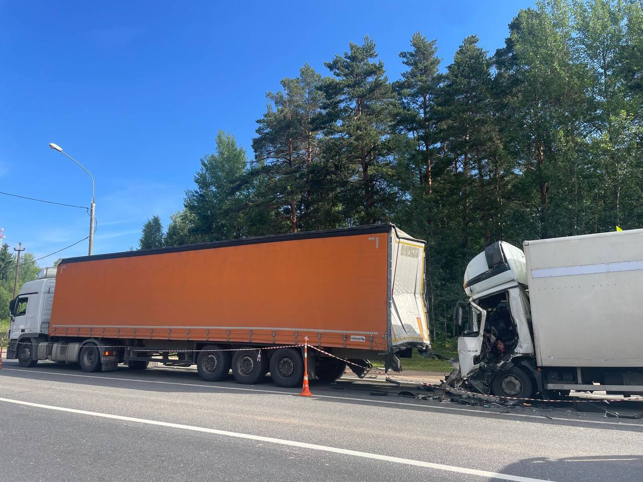 В 7:00 на федеральной автодороге М10 столкнулись два грузовика, в результате водитель одного из них скончался в автомобиле скорой помощи.