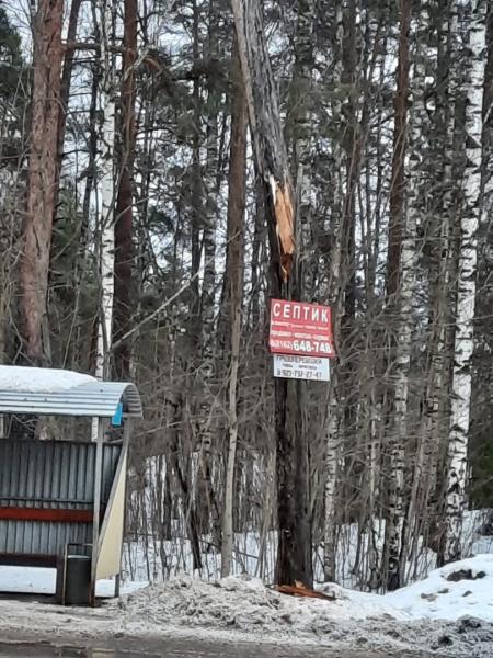 19.01.2023 сотрудниками отдела благоустройства Администрации Окуловского муниципального района было обнаружено аварийное дерево рядом с остановкой района ЦРБ.