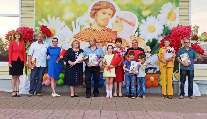 Почетным знаком Новгородской области «За верность родительскому долгу» за значительный личный вклад в развитие и воспитание детей была награждена семья Васильевых. Три семьи были награждены Медалями «За любовь и верность», которые вручаются лучшим семьям России. На празднике чествовали семьи, которые в этом году отмечающие юбилейные даты свадеб. Зрители очень тепло встречали, каждого участника этого замечательного праздника.