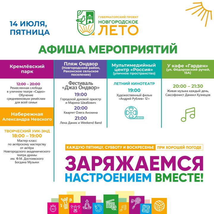 Афиша фестиваля «Новгородское лето» с 14 по 16 июля