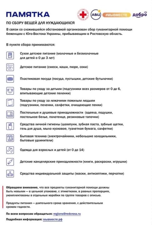 с понедельника по пятницу с 8.30 до 17.30 (обед с 13.00 до 14.00) в отдел-центрах по работе с населением Администрации Великого Новгорода: «Волховский» (ул. Новгородская, д. 9, тел. 646-293), «Псковский» (ул. Псковская, д.44, корп.2, тел. 730-220), «Григоровский» (ул. Ломоносова, д.18, корп.2, тел. 678-620), «Нехинский» (ул. Ломоносова, д. 18, корп.2, тел. 627-342), «Кречевицы» (Кречевицы, д.26, тел.793-332), «Западный» (ул. Коровникова, д.3, корп.4, тел. 673-526), «Центральный» (ул. Октябрьская, д. 26, тел. 766-088), «Северный» (ул. Щусева, д. 12, корп. 2, тел. 644-971). Также гуманитарную помощь можно передать по будням с 09.00 до 18.00 через Региональную общественную приемную Председателя Партии «ЕДИНАЯ РОССИЯ» Д.А.Медведева в Новгородской области (ул. Большая Московская 37/9, тел. 67-16-24) и Региональное отделение Партии «ЕДИНАЯ РОССИЯ» (ул. Людогоща, д. 3, тел. 67-92-48); в выходные дни с 10.00 до 16.00 в Центре культуры, искусства и общественных инициатив «Диалог» (ул. Большая Московская, д.37/9), Дворце культуры и молодежи «ГОРОД» (ул. Псковская, д. 1), Городском центре культуры и досуга имени Н.Г. Васильева (ул. Дворцовая, д. 3) и Библиотечном центре для детей и юношества «Читай-город» (пр. Мира, д. 1).Обращаем внимание, что в состав гуманитарного груза принимаются только товары с длительным сроком хранения и действительным сроком годности, не принимаются товары, бывшие в употреблении.