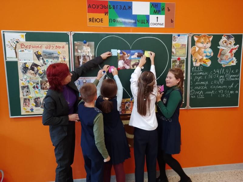 Школьники активно принимали участие в беседе, рассказывали о своих любимцах, живущих дома. Затем детям было предложено написать на разноцветных листах то, за что они любят своих пушистых друзей и создать общее полотно. В завершение мероприятия мальчики и девочки посмотрели предложенные им книги и журналы.