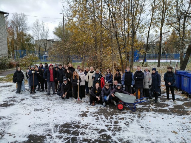 Владимир Богомолов совместно со специалистами отдела-центра по работе с населением по месту жительства «Григоровский» и педагогическим коллективом средней школы № 23 убрали мусор и опавшую листву на прилегающей к учебному заведению аллее.