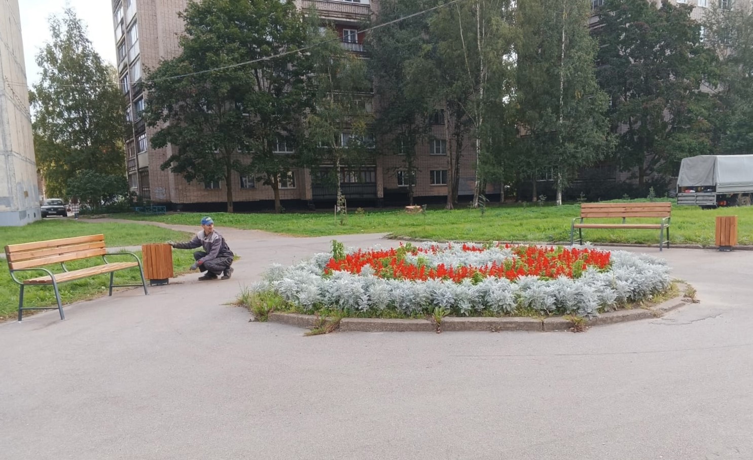 Новые скамейки и урны в Великом Новгороде