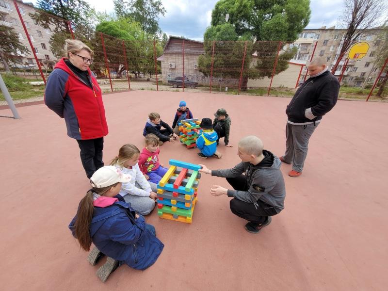 Ребята с удовольствием прошли эстафету, играли в такие игры, как "Вышибалы", "Дженга". В завершении мероприятия ребята совместно с методистами построили башню.