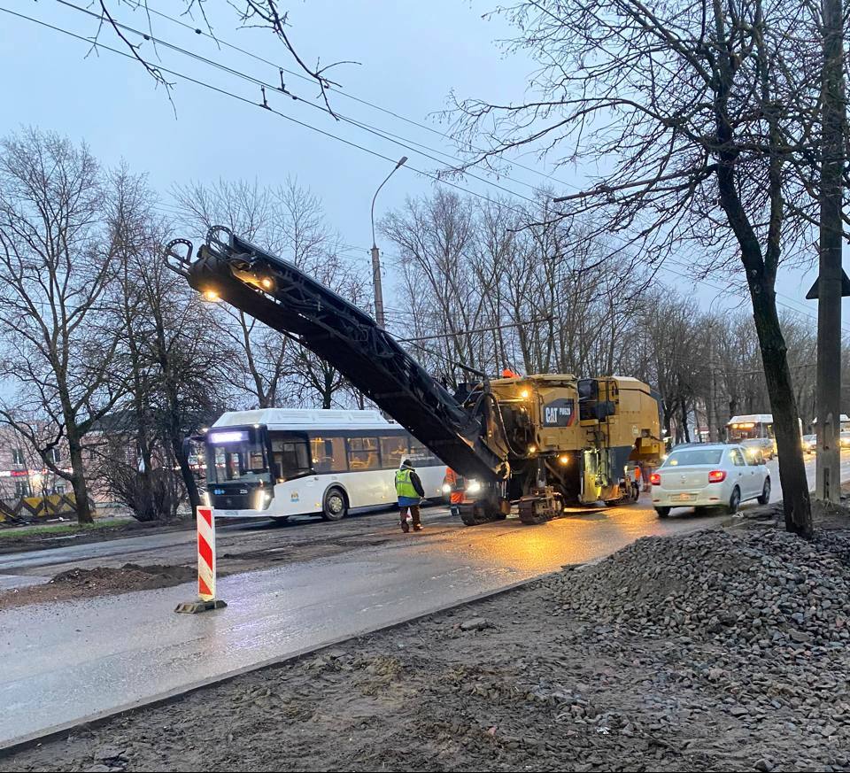 Ремонт дороги на улице Большая Санкт-Петербургская в Великом Новгороде