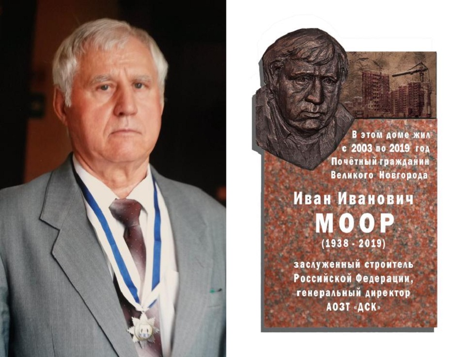 26 августа в 12 часов в Великом Новгороде торжественно откроют мемориальную доску в память о Почётном гражданине Великого Новгорода, заслуженном строителе Российской Федерации, бывшем генеральном директоре АОЗТ «ДСК» Иване Ивановиче Мооре (1938-2019).