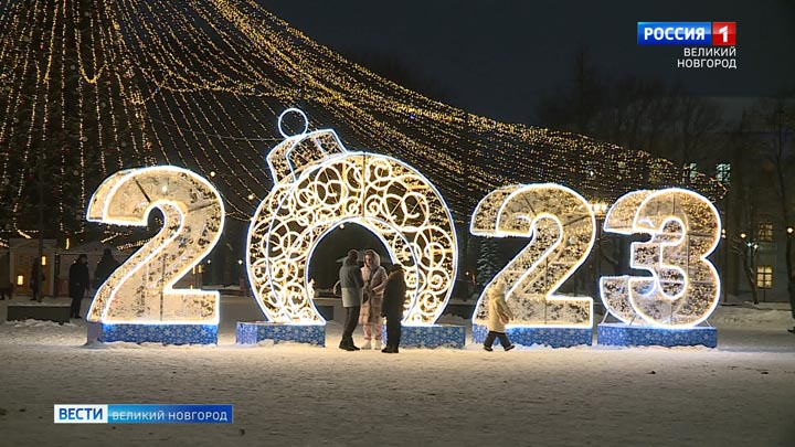 Многие городские объекты Великого Новгорода украсили праздничной иллюминацией