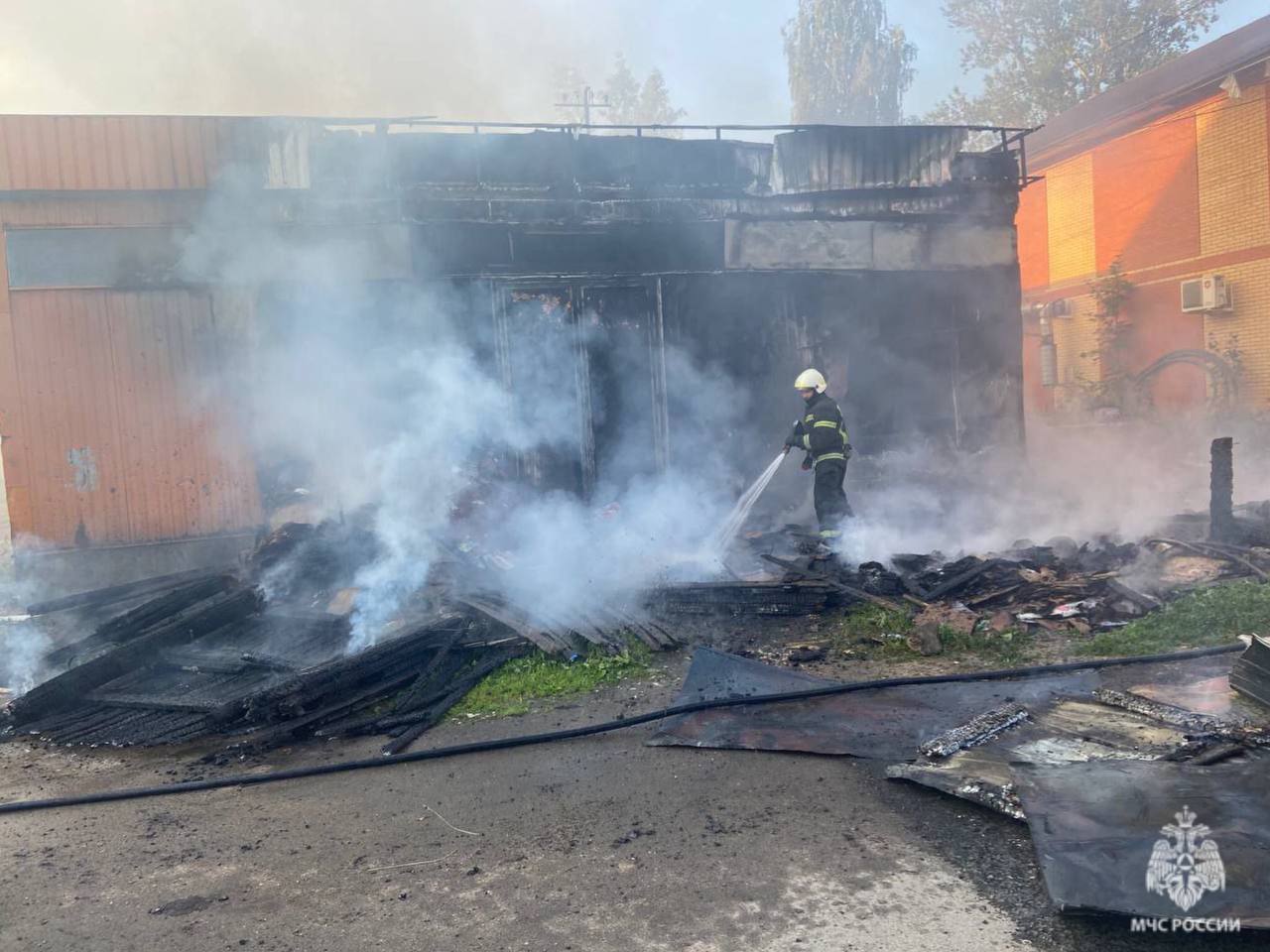 В 5:53 пожар ликвидировали. Огонь уничтожил хозяйственную постройку и повредил стену пункта приёма макулатуры.