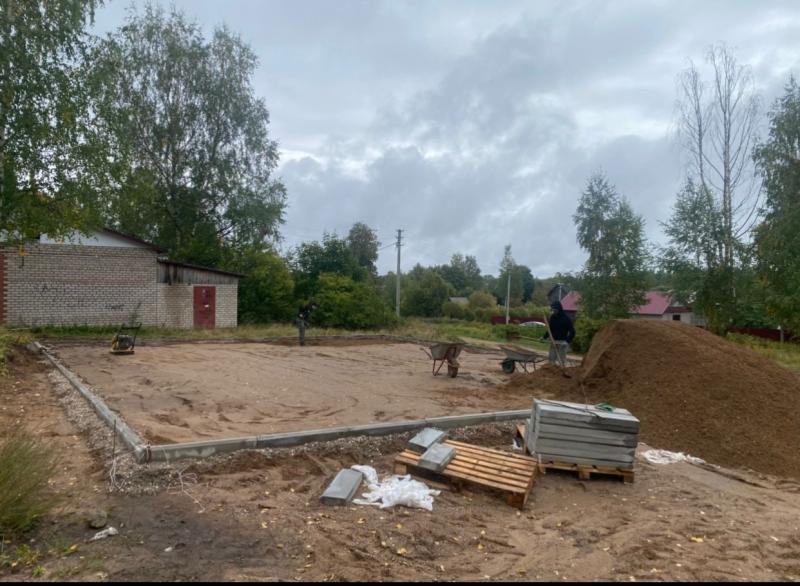 На территории Окуловского городского поселения ведутся работы по обустройству новой детской игровой площадки по ул. Советская