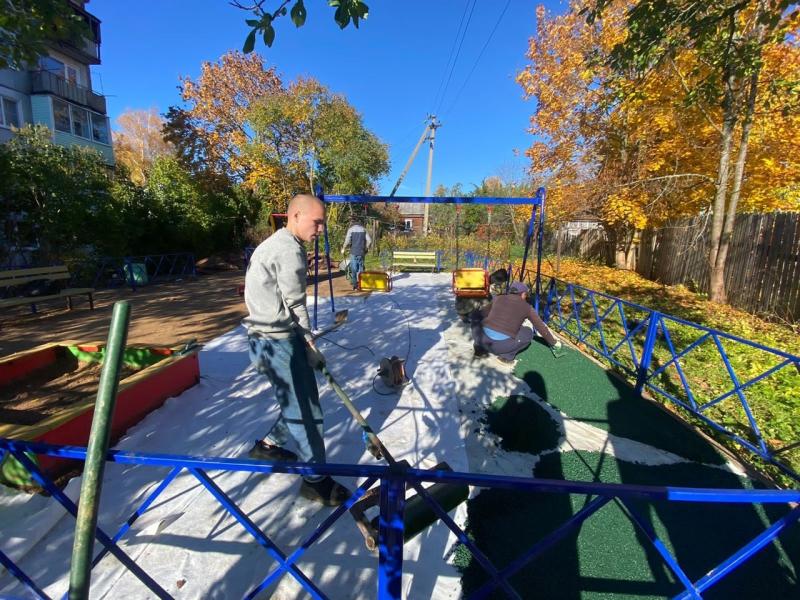 10.10.2022 года в городе Окуловка начаты работы по замене некачественно уложенного резинового противоскользящего покрытия Kraft на детской игровой площадке по адресу 2-я Комсомольская д. 4а.