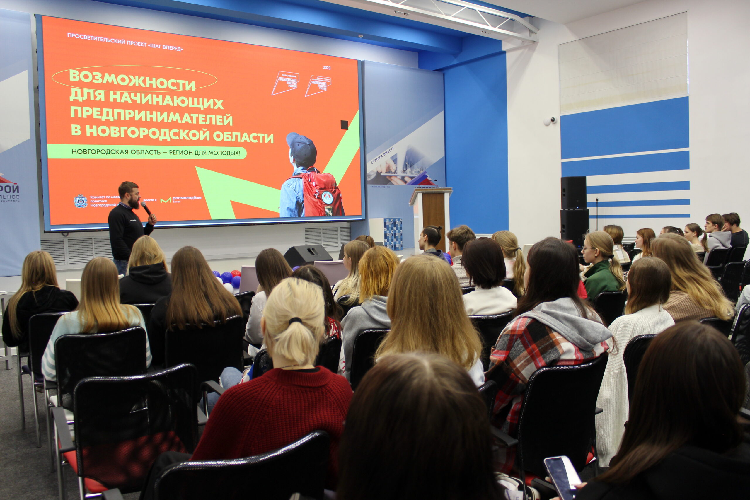 В Новгородской области при поддержке федерального агентства по делам молодёжи продолжается реализация масштабного просветительского проекта «Шаг вперед». Последняя из серии встреч наставников-предпринимателей с молодежью прошла в актовом зале Новгородского строительного колледжа. Во встрече приняли участие студенты специальностей, связанных с развитием туризма и гостиничного дела, а также будущие дизайнеры и архитекторы.