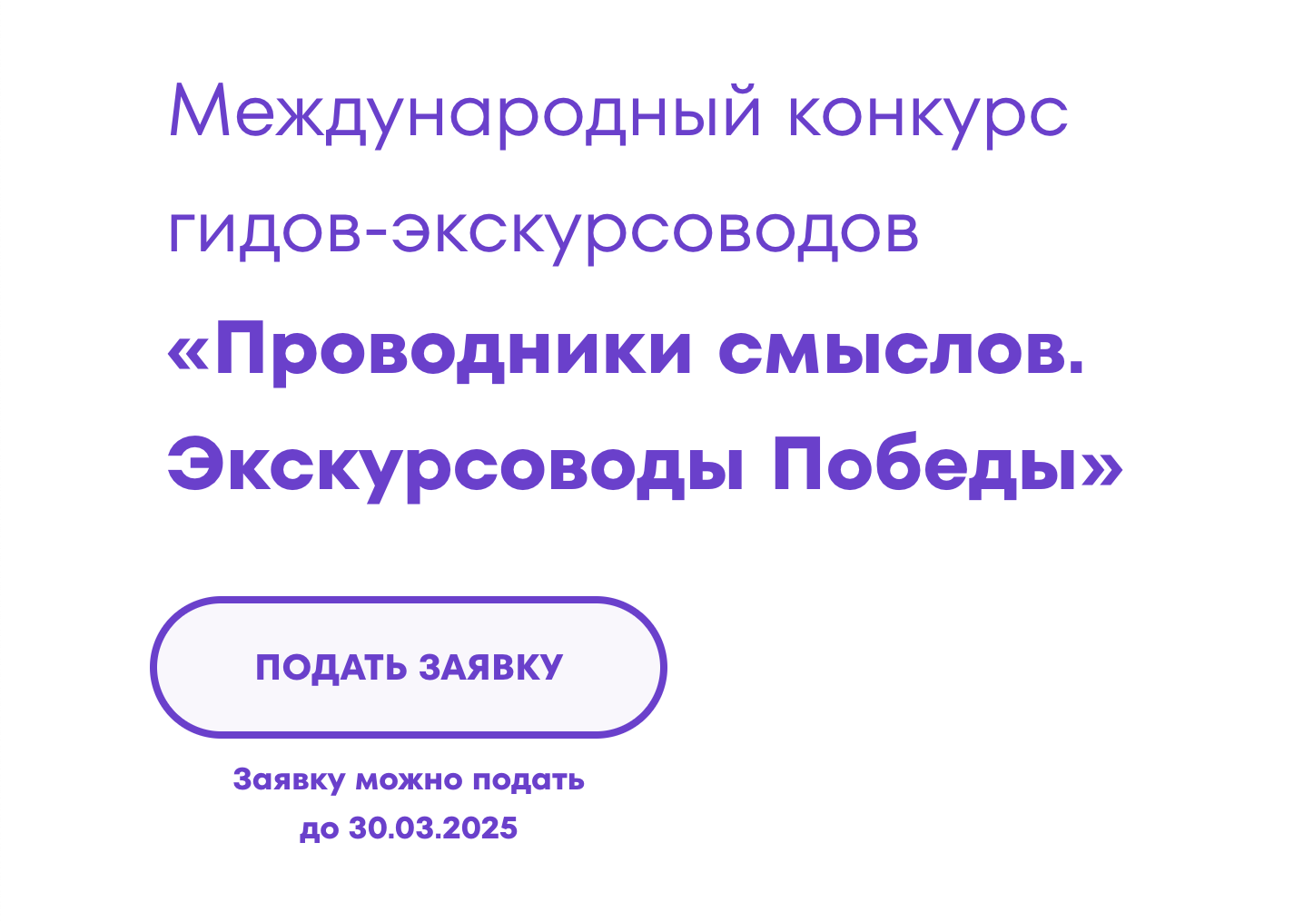 Конкурс предоставляет уникальную возможность для гидов-переводчиков, сотрудников музеев военно-патриотической тематики, авторов экскурсионного контента, посвященного памяти Великой Отечественной войны 1941–1945 годов, а также для менеджеров в сфере туризма, студентов и преподавателей исторического профиля.
