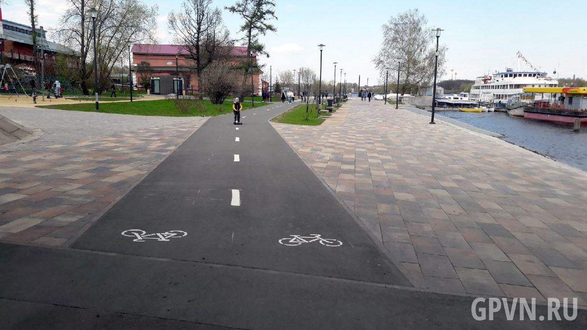 Единственном недоступным местом, не считая затопленного нижнего яруса набережной, на данный момент оказались понтоны, на которые сейчас можно попасть только по воде. До схода снега, когда набережная ещё не была подготовлена для прогулок, посетители приходили именно туда. Там с пирса кормили птиц.