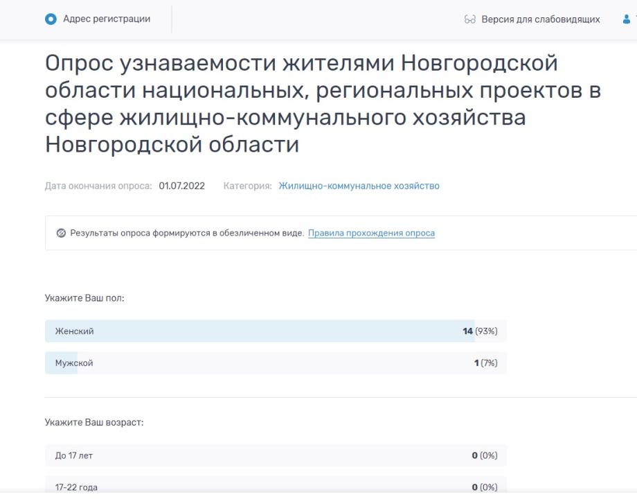 Опрос по узнаваемости национальных и региональных проектов в сфере ЖКХ Новгородской области
