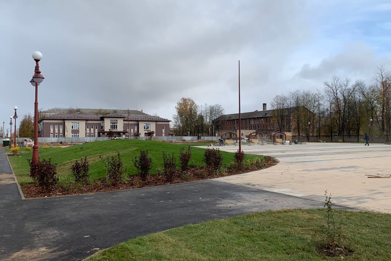 В Боровичах завершается благоустройство площади имени 1 Мая. В архитектурных решениях нашли отражение страницы истории города и природные красоты края.