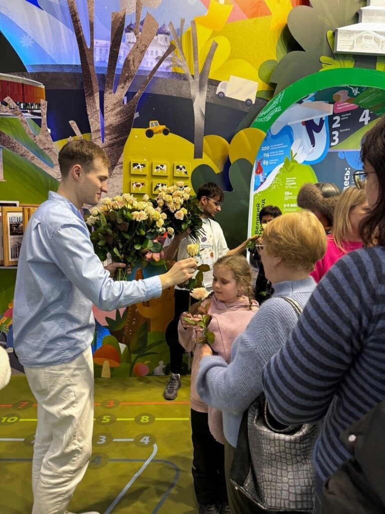 Посетительницам стенда Новгородской области на выставке «Россия» сегодня дарили цветы