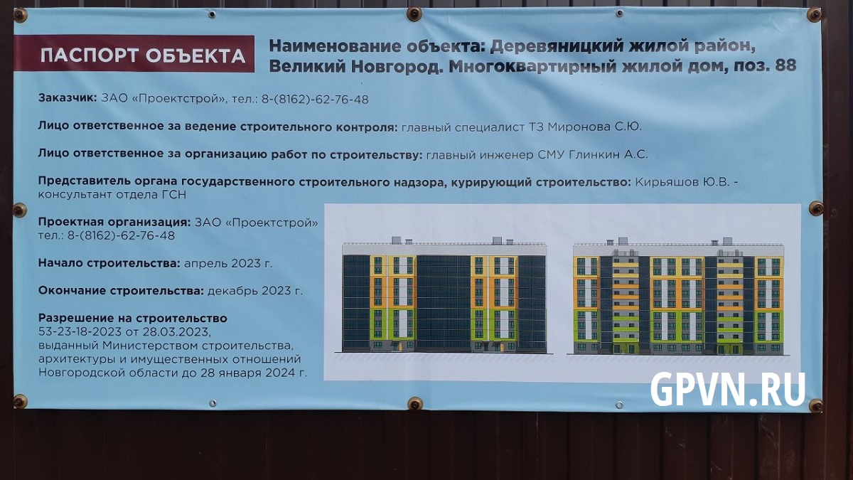 На объекте застройщик разместил баннер, на котором изображён будущий дом. В нём будет 2 подъезда и 9 жилых этажей. Строительство собираются завершить в 2023 году.