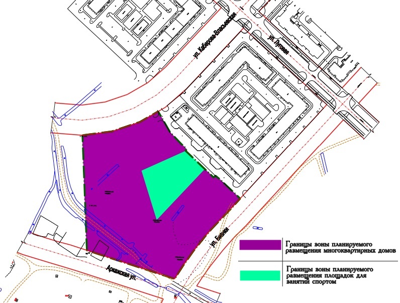 Как следует из представленной документации, на территории будет выделено пространство для строительства домов и для спортивных площадок.