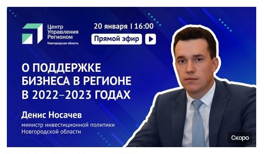 20 января в группе Центра управления регионом состоится прямой эфир с министром инвестиционной политики Денисом Носачевым . Речь пойдет о поддержке бизнеса в этом году. Прозвучит масса полезной информации. Также министр ответит на вопросы. Их заранее можно оставить под анонсом эфира в группе ЦУРа в ВК. Трансляция стартует в 16 часов