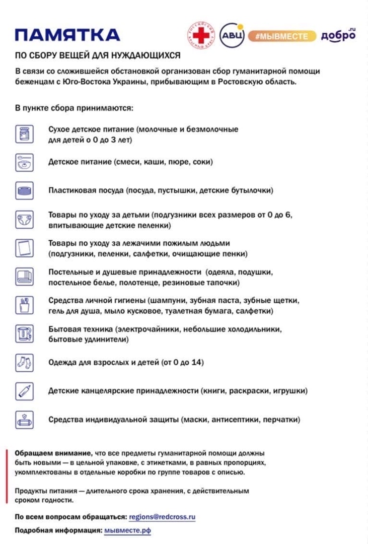 Список пунктов сбора гуманитарной помощи: