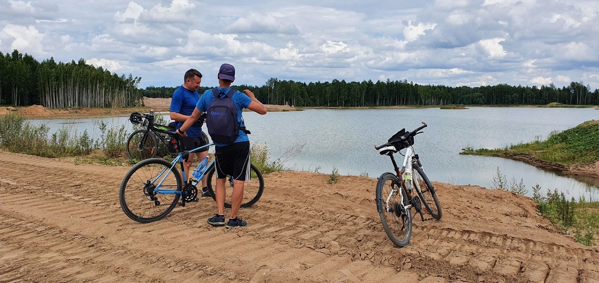 От Теребутицы мы ехали уже всем составом. Вскоре мы выехали на псковскую трассу, где подкачали колёса и направились дальше минуя Шимск, и далее нас ждала шимская трасса, на которой было множество ремонтных участков. После деревни Лесная нас вновь накрыл ливень, от которого нам было уже не спрятаться и мы так ехали под ливнем где-то 10 минут. Доехав до деревни Борки, мы спешились и, купив в магазине продуктов, немного подкрепились и приняли решение ехать по поозерской дороге, так как шимская трасса была вся в лужах и были опасения, что нас обрызгают.