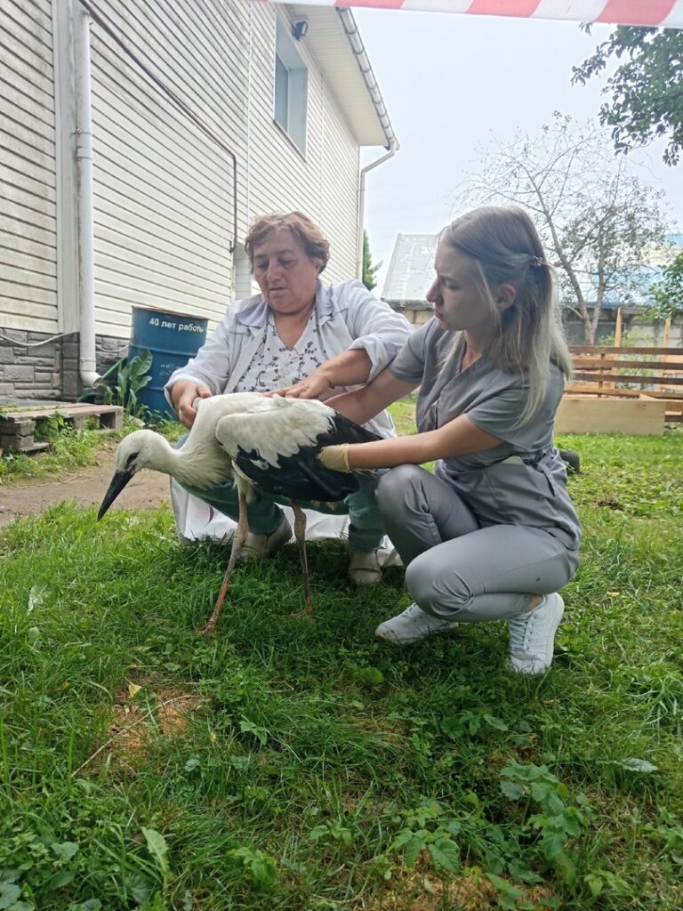 Местные жители сразу отвезли аистят в конный двор «И-ГО-ГО» в Старой Руссе. Там птичкам соорудили гнездо с возможностью подхода для кормёжки, отпоили их водой, раны обработали. Через несколько дней аистят осмотрели врачи. К счастью, обошлось без переломов. Специалисты диагностировали только сильные ушибы.