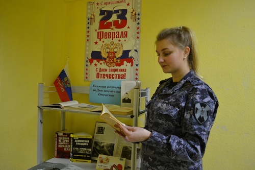 В отделе вневедомственной охраны Росгвардии открылась книжная выставка ко Дню защитника Отечества