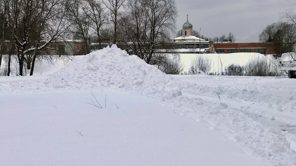 В парке «Красное поле» в Великом Новгороде строят снежную горку