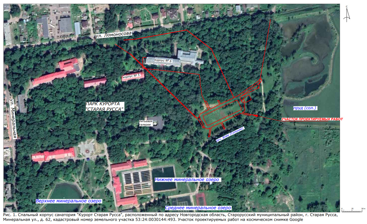 В санатории «Курорт Старая Русса» собираются построить новый спальный корпус. Он расположится за питьевой галереей, вдоль ручья Солоник со скульптурами (северо-восточная часть территории санатория).
