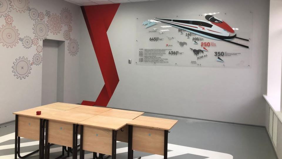 Железнодорожный класс в новгородской школе №22 сделало ОАО «РЖД». Выполнен капитальный ремонт помещения, а оформление посвящено железнодорожному транспорту.