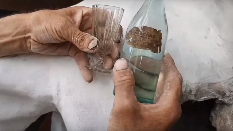 Внутри скульптуры оказалась бутылка спирта и рюмка сталинских времён.
