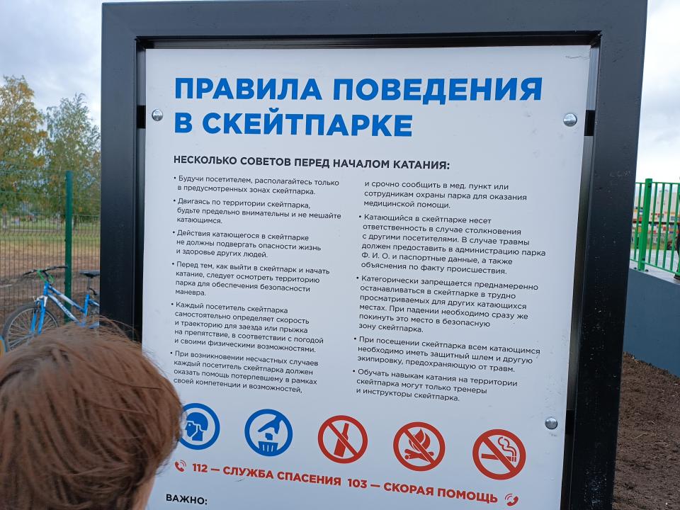 Скейт-парк включает различные фигуры, позволяющие развивать и совершенствовать навыки катания, изучать основы экстремальных видов спорта (скейтборд, ролики, самокаты, BMX). Так, в скейт-парке появились фигуры различной формы и конструкции: разгонки, квотеры, перила, грайндбоксы и другие элементы, предназначенные для выполнения различных видов трюков. Также рабочие установили ограждение площадки, скамейки, видеонаблюдение и смонтировали наружное освещение. Срок гарантии на выполненные работы - 60 месяцев.