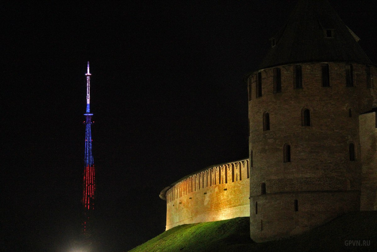 Вечером эту подсветку включат снова. Подобные акции проходят по всей стране. Напомним, новая подсветка на новгородской телебашне появилась в этом году.