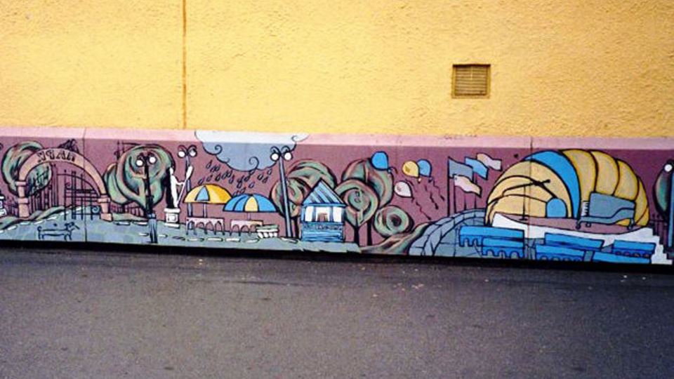 Напомним, когда «Диез» ещё размещался в здании в начале Большой Санкт-Петербургской улицы, на цоколе этого здания художница Елена Соколова создала граффити, изображающее город. В 2012 году здание занял сетевой магазин «Магнит», оформив его в свои фирменные цвета, а вместе с тем и закрасил граффити.